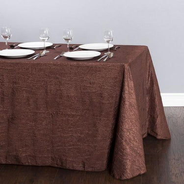 No ironing required! Crinkle taffeta tablecloths offer a unique, lustrous texture adding depth to table designs. No iron required saving you valuable time! 90 x 156 in. Rectangular Crinkle Taffeta Tablecloths are made from quality crushed taffeta material and provide a full drop on standard 8 ft. banquet tables. Pair these beautiful tablecloths with crinkle taffeta runners and sashes to complete your look!