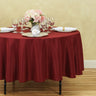 Round polyester tablecloths are one of our most popular products and it's not hard to see why! The durability of polyester combines with one of our thirty-two incredible colors to create tablecloths ideal for any type of party or event from food service to high scale wedding receptions. Take a look at our gallery for a bit of inspiration on your next masterpiece. 90 in. round tablecloths provide a half drop on standard 60 in. round tables.