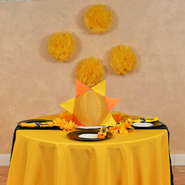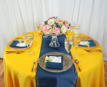 Round polyester tablecloths are one of our most popular products and it's not hard to see why! The durability of polyester combines with one of our thirty-two incredible colors to create tablecloths ideal for any type of party or event from food service to high scale wedding receptions. Take a look at our gallery for a bit of inspiration on your next masterpiece. 120 in. round tablecloths provide a full drop on standard 60 in. round tables.
