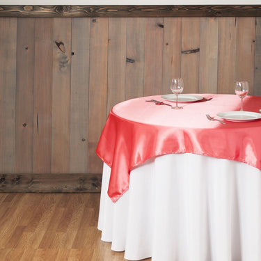 Bump your plain tablecloths up a notch with square satin overlays! When combined with one of our many beautiful tablecloths, these overlays will help portray an air of smooth splendor. Use in conjunction with satin table runners for a dual colored masterpiece. Please note that the product photo is for display purposes only. Tablecloths used underneath the overlay are sold separately.