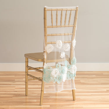 Featuring various shades of delicate tulle roses at the bottom, our tulle rose chiavari chair cap helps add a romantic and refreshing ambiance to any event.