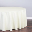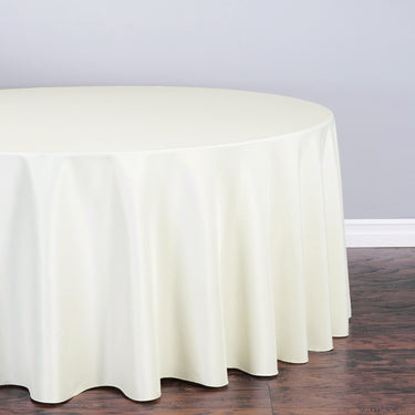108 inch round ivory tablecloths are elegance as well as practicle. And combined with durable polyester you have a tablecloth ideal for any type of party or event, from food service to high scale wedding receptions. Take a look at our gallery for a bit of inspiration on your next masterpiece. 108 in. round tablecloths provide a full drop to the floor on standard 48 in. round tables.