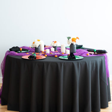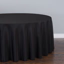 Round polyester tablecloths in black imply sophistication and class. Made of one seamless piece of durable yet plush polyester, this tablecloth is ideal for restaurants or any type of party or event from food service to high scale wedding receptions. 120 in. round tablecloths provide a full drop on standard 60 in. round tables. Our 120 inch round black tablecloth is just one choice in our selection of twenty incredible colors.