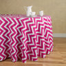 Characterized by bold zig-zag stripes, this 70's retro pattern has re-emerged with more pizzazz than ever. Made of 100% premium cotton, 120 in. Chevron Round Cotton Tablecloths help create a vivid style on any table. This round chevron tablecloth provides a floor length drop on standard 60 inch round tables or a lesser drop for larger tables. See other coordinating products from our Chevron Collection.