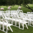 These heavy duty resin folding wedding chairs are the standard in the event rental and wedding industry. They're stackable for easy transport and a single heavy duty resin folding chair can support up to 800 lbs.